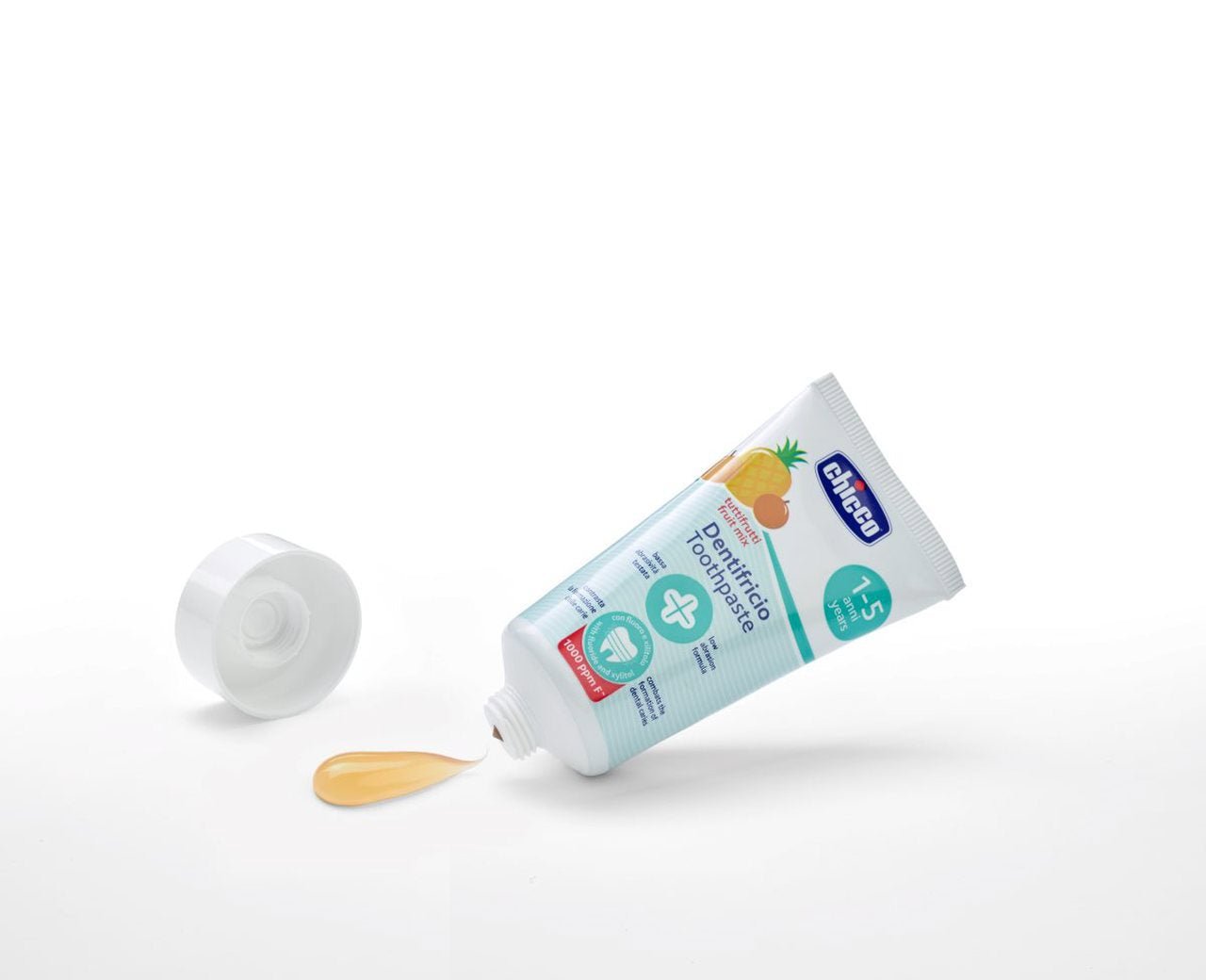 Chicco Tutti-Frutti Toothpaste 1-5 Years has been specially developed for the first years of dental care, offering gentle and effective protection for baby teeth. Its formula contains fluoride in the right amount to protect against tooth decay, while the delicious tutti-frutti flavor makes brushing more enjoyable for little ones.