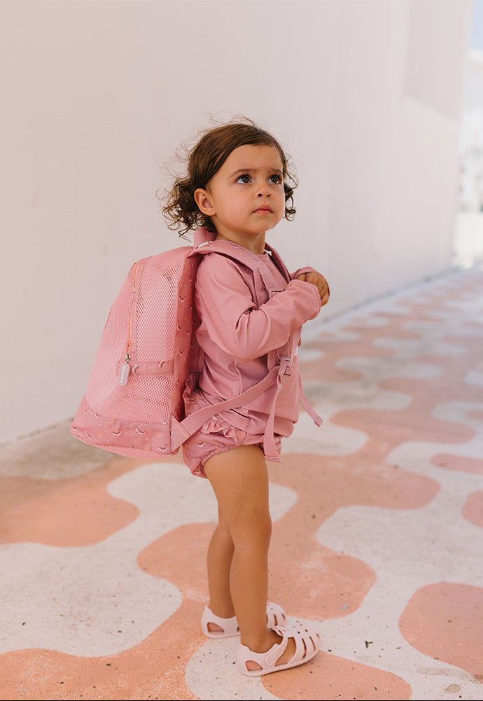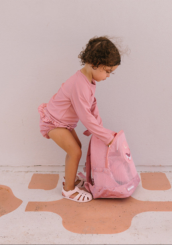 Monnëka Mochila Anti-Areia foi desenvolvida para acompanhar as crianças nas suas aventuras de verão, oferecendo leveza, praticidade e organização, seja na praia, piscina ou passeios ao ar livre. A sua estrutura em malha permite que a areia caia facilmente, evitando acumulação de resíduos no interior.