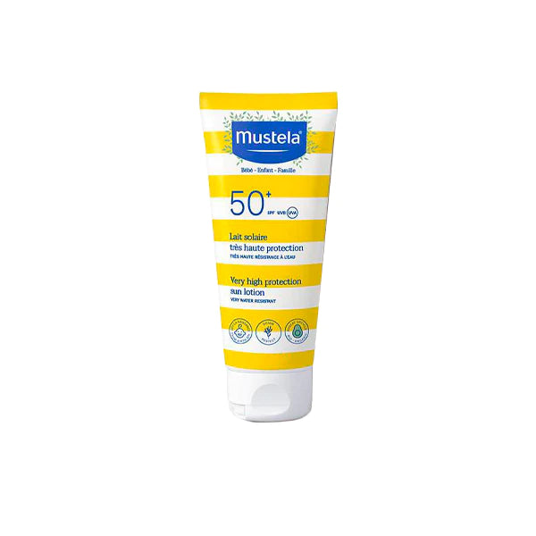 Mustela Very High Protection Sun Milk SPF50+ is specifically formulated to protect the fragile skin of babies and children from the dangers of the sun, from birth. Adapted to all skin types, including atopic skin and intolerant and reactive skin, it has very high protection SPF50+ UVB – UVA 25 PPD.