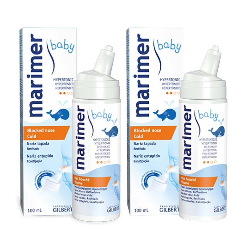 Marimer Baby Spray Nasal Hipertónico es una solución de agua de mar hipertónica, naturalmente rica en sales minerales y oligoelementos marinos, indicada para la higiene y descongestión de las fosas nasales de los bebés y niños, especialmente en casos de resfriados.