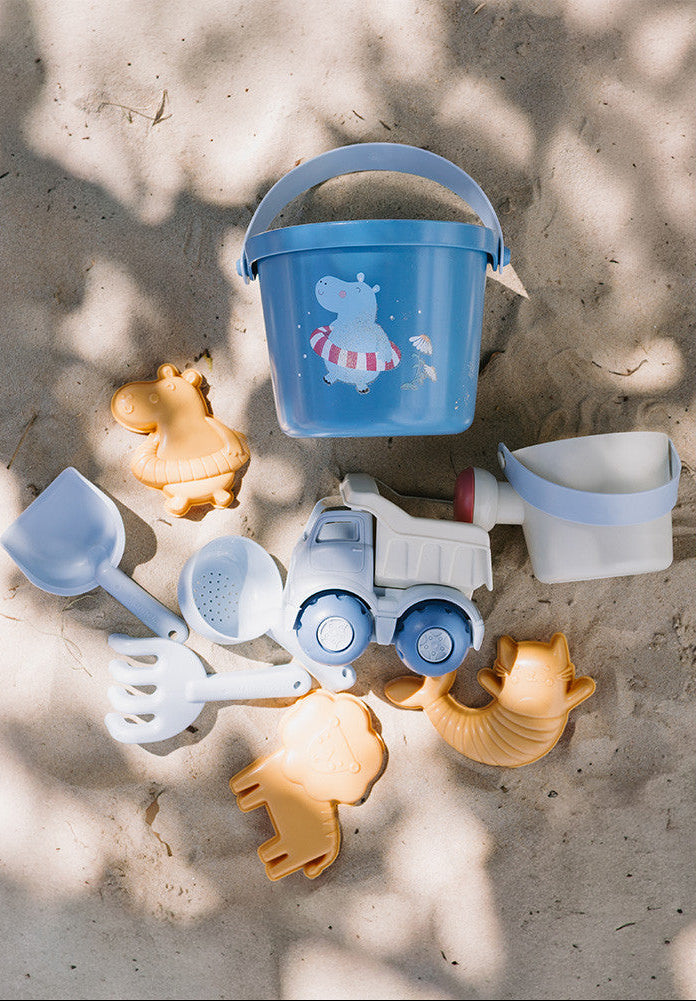 O conjunto ideal para explorar, construir e brincar na areia, promovendo a criatividade e as primeiras experiências sensoriais ao ar livre. Inclui tudo o que é necessário para horas de diversão na praia ou no parque.