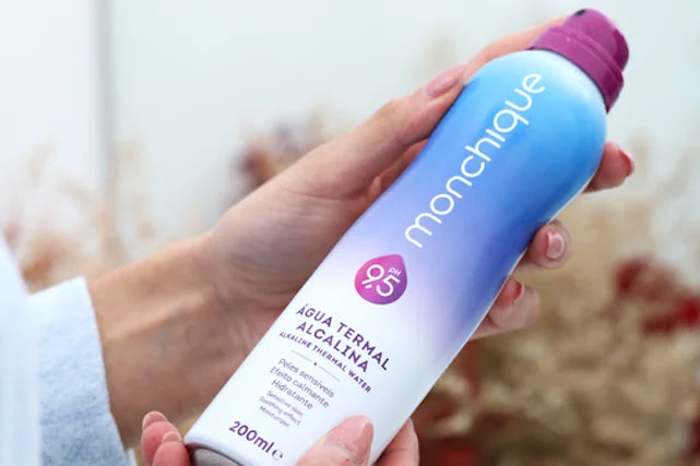 Monchique 9.5pH Água Termal Spray oferece hidratação, suavidade e alívio imediato para a pele, graças à sua composição naturalmente alcalina e rica em minerais. Com pH 9.5, esta água termal 100% portuguesa ajuda a acalmar irritações, reduzir vermelhidões e reforçar a barreira cutânea, podendo ser usada por toda a família, incluindo bebés e peles sensíveis.