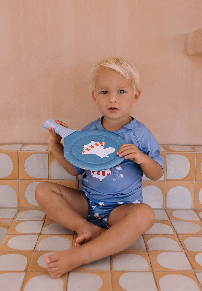 Indicado para crianças a partir dos 3 anos, é perfeito para brincar na praia, piscina ou jardim. As raquetes são feitas em tecido de neoprene com interior em plástico ABS, garantindo leveza, resistência e conforto na utilização. A bola em PVC é leve e fácil de manusear, adequada para os mais pequenos.