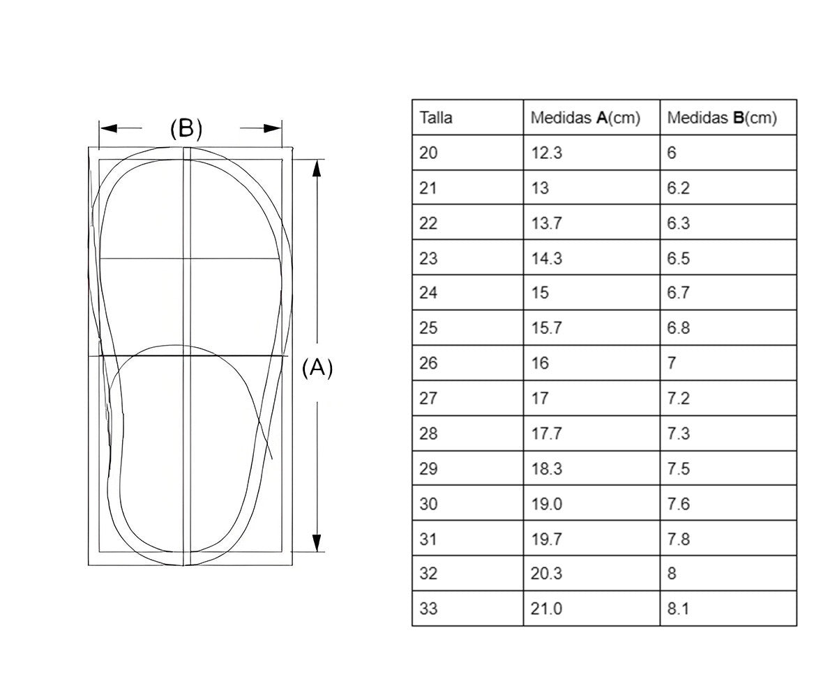 ATENÇÃO: consulte a tabela de medidas; meça do calcanhar ao dedo mais longo do pé da criança