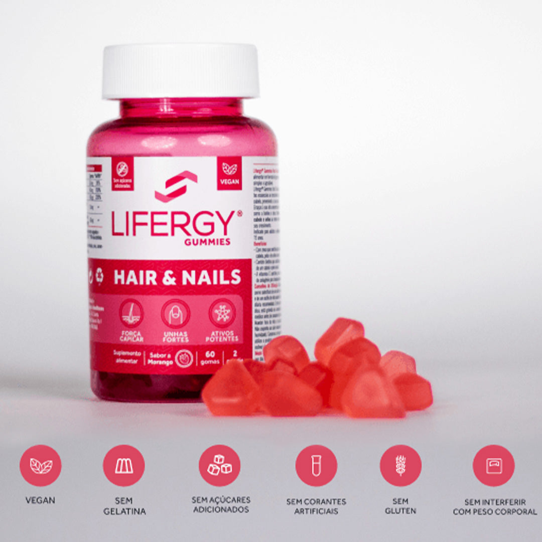 Com uma fórmula prática e sem açúcar, as Lifergy Gomas Hair & Nails são ideais para quem procura uma solução eficaz e deliciosa para cuidar da beleza de forma simples. O uso regular contribui para cabelos mais fortes, brilhantes e volumosos, além de unhas mais resistentes, promovendo resultados visíveis e duradouros.
